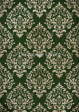 Decoupage Paper - DQ - DQRP0685 - A4 - Christmas Damask Green