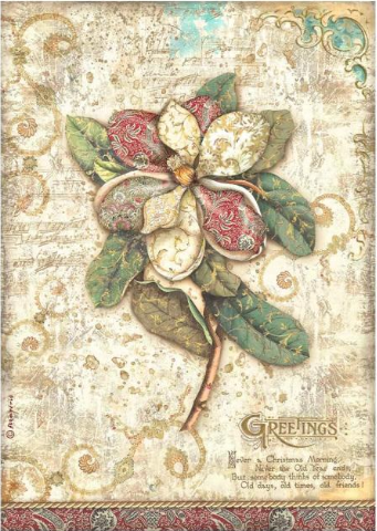 Decoupage Paper - Stamperia - A4 - DFSA4794 - Christmas Greetings Flower - Rice Paper